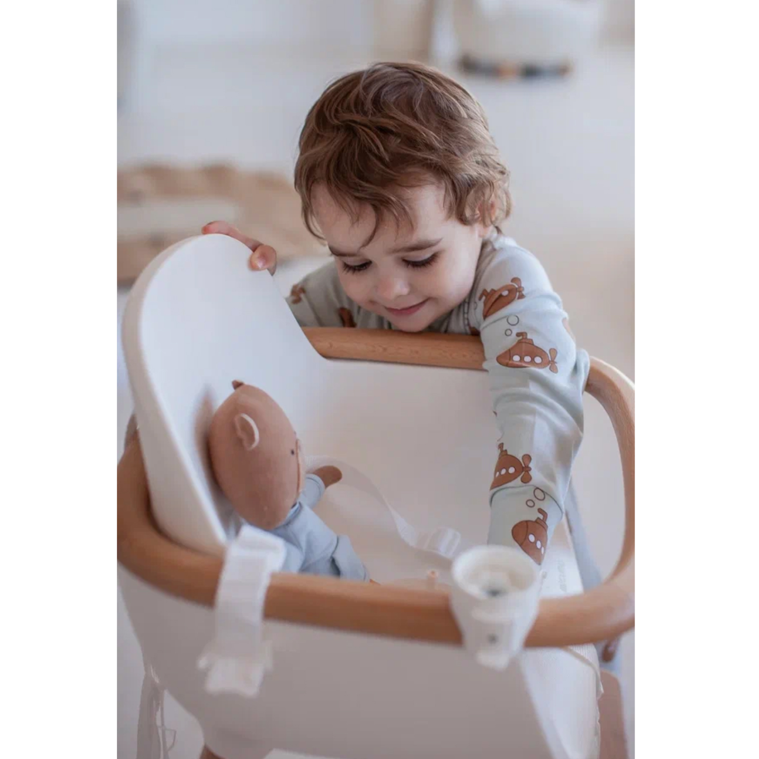 - 5-точечные регулируемые ремни безопасности надёжно фиксируют малыша в стульчике;